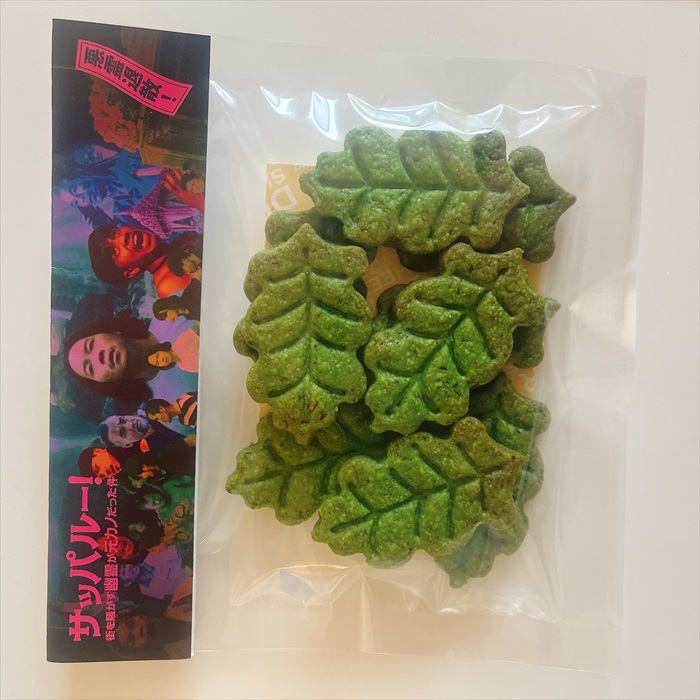 そんなタイアップメニューに狂喜乱舞し常軌を逸した宣伝部は、さらにホラー菓子でお馴染みの「中西怪奇菓子工房。」さんへも直談判!「幽体離脱できるお菓子を作って欲しいのですが…」。全国にスウィーツと悲鳴をお届けしている中西さんもきっと「こいつらはいったい何を言っているのだろうか…」と思ったに違いないが、様子のおかしい宣伝部の悲痛な叫びを受け快諾のお返事をいただき…。出来上がったのは、タイで悪魔を寄せ付けないと重宝されるホーリーバジルを使ったリーフクッキー、題して“幽体離脱クッキー”!!!劇中で主人公が幽体離脱する際に口にする葉っぱを模した、形といい効能といい本格的な逸品だ!(実際に幽体離脱できるかどうかは本人の技量次第となります) こちらのタイアップ商品も9月25日にLOFT9 Shibuyaで実施されるイベント「裏タイフェス~幽体離脱でイサーン体験♡~」で先行販売。その後、9月26日より一部劇場にて販売開始となる。