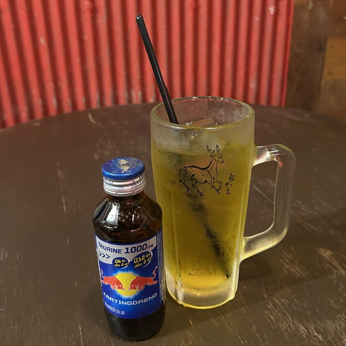 元気になること間違いなし!レッドブルの元祖、Krating Daeng (クラティン・デーン)は炭酸無しの甘み強めなエナジードリンク。アルコールなし・アルコール入りをお選びいただけます。