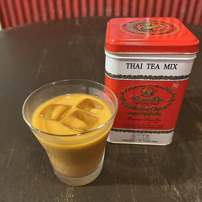 独特な色にびっくり?!タイティーは茶葉に砂糖とコンデンスミルク(練乳)を加えた甘めのミルクティー。その濃厚な味わいは辛いタイ料理との相性抜群!70年以上タイで親しまれているタイで有名なお茶です。