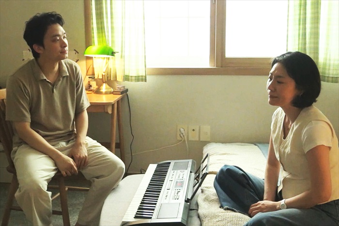 今回解禁されたキービジュアルは、花柄のワンピース姿で石の上に佇むユペールの姿を捉えたもの。ミステリアスな表情とともに映し出されるコピーは、彼女の“必需品”である「詩、マッコリ、年下のボーイフレンド」。旅人イリスの日常への好奇心をかき立てる仕上がりとなっている。加えて、解禁された場面写真では、ユペール以外にも、ここ数年来のホン・サンス作品常連となる俳優たちの顔ぶれが並ぶ。イリスがレッスンを行う生徒役をイ・ヘヨン(『小説家の映画』)、そのパートナー役をクォン・ヘヒョ(『WALK UP』)、そして年下ボーイフレンド役を『ミマン』(23/キム・テヤン監督)で主演を演じたハ・ソングク(『小説家の映画』)、その母親役をチョ・ユニ(『WALK UP』)が演じている。