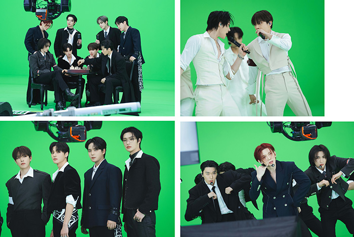 解禁されたビハインドカットには、グリーンバック撮影に挑むメンバーたちの貴重な姿が収められています。今回、日本のファンのために特別公開されたビハインドでは、パフォーマンスシーンだけでなく、メンバーそれぞれがカメラに向かってポージングする愛らしい表情も披露。さらに、真剣な眼差しで撮影に臨む姿など、普段のステージでは見ることのできない素顔が垣間見える内容となっています。