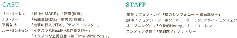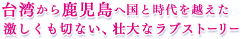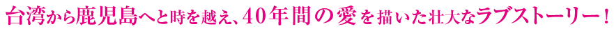 家族のために自分を犠牲にして生きたひとりの女性と、その女性を愛したふたりの男性が台湾と鹿児島を舞台に織り成す、1970年代から現代までの40年にも及ぶ壮大な愛を描いた物語。ヒロインには女優・歌手として活動するナナ・リー、彼女を想う男たちに歌手や司会者としても活躍するリー・リーレン、そして日本から平岡祐太が大抜擢!