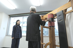 再度、木人トレーニングにチャレンジする古川さん。
