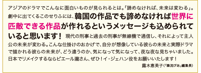声の主は15年前の未解決事件を追うイ・ジェハン刑事だった。