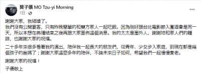 『親愛なる君へ』など、数多くの作品で活躍する台湾の俳優モー・ズーイー(莫子儀)が、7月9日に自身のfacebookで結婚を発表した。