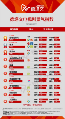 德塔文科技:景気指数TOP10 リー・イーフォン、ティファニー・タン&ショーン・ドゥの出演作がランクイン