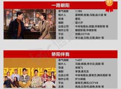 最新中国ドラマ|ドラマ景気指数TOP10:成熟した恋愛ドラマ「一路朝陽(原題)」が人気に