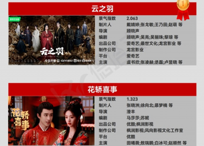 最新中国ドラマ|時代劇「雲之羽」がドラマ景気指数のトップを獲得