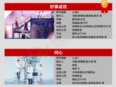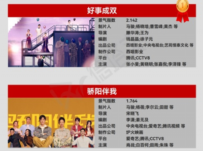 最新中国ドラマ|ドラマ景気指数TOP10:ホアン・シャオミン主演「好事成双(原題)」がトップに