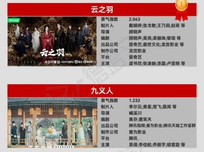 最新中国ドラマ|ドラマ景気指数TOP10「雲之羽」が依然としてトップの座に!
