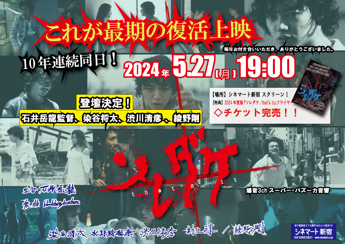 2015年5月27日の初公開以降、毎年同日の5月27日にシネマート新宿で上映されてきた映画『ソレダケ / that’s it』ですが、