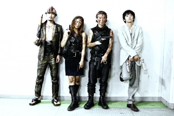 染谷将太、水野絵梨奈、渋川清彦、村上淳、そして綾野剛という強烈な個性派キャストが全篇にブッチャーズの楽曲、音が鳴り響くなか全力疾走と拷問、罵詈雑言の応酬、血まみれの銃撃戦を展開。
