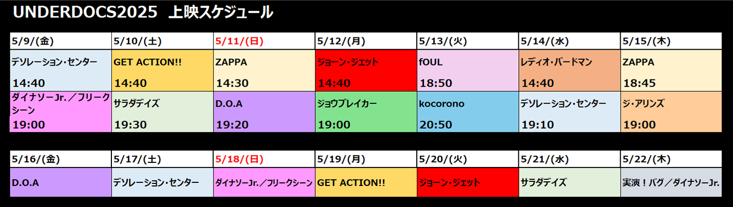 地下にうごめく数々の<アンダーグラウンドなロック・ドキュメンタリー映画>にスポットライトをあてる期間限定の特集上映、