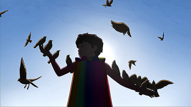 気候変動により荒廃が進んだ2075年の地球。10歳の少女イリスは、ある日、空から虹色の光を放ちながら落ちてくる謎の物体を目撃する。それは、タイムトラベルが可能になった遥か未来(西暦2932年)から不時着した少年、アルコだった。 未来へ帰る手段を失ったアルコと、閉塞感のある世界で愛を失い、孤独を抱えて生きるイリス。二人はアルコの「虹色のスーツ」に隠された謎を解き、未来への帰還ルート=“虹の道”を探す旅に出る。しかし、そんな彼らを謎の追跡者が追い詰めていき……。時を超えた友情が、壊れゆく世界の運命を照らし出す!!
