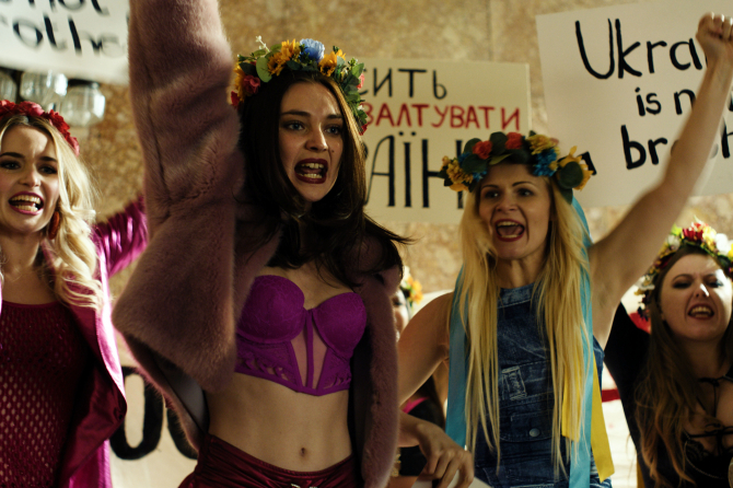 2002年、ウクライナ西部フメリニツキー。オクサナはアルコール依存症の父とそれを献身的に支える母と暮らし、イコン画を描いて家計を支えていたが、教会からの不当な扱いや男尊女卑が根深い社会の理不尽に耐えきれず、家を飛び出す。2008年、街頭討論で出会った仲間たちとともにフェミニスト活動団体「FEMEN」を結成。医療過誤による女性患者の死への抗議を皮切りに活動を拡大させる。2009年、首都キーウでセックスツーリズム撲滅を訴える中、オクサナは注目を集めるため上半身を脱ぎ、身体を「戦闘服」として使う表現にたどり着く。やがて活動は国境を越え、2011年にはベラルーシ・ミンスクでアレクサンドル・ルカシェンコ政権に抗議し拘束と拷問を受け、モスクワではウラジーミル・プーチンへの抗議で重傷を負う。FEMENへの監視と弾圧が激化するなか、オクサナは政治難民としてパリへ逃れる決断を迫られていく......。