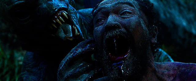 第二次大戦末期の1944年。日本軍の捕虜移送船が連合軍の攻撃で沈没し、日本兵の斎藤と英軍捕虜ブロンソンは鎖で繋がれたまま無人島へ漂着する。互いに敵意を向けて争う二人だったが、島にはマレー神話の怪物“半魚人”オラン・イカンが潜んでいた。生存のため協力し始めるも、他の日本兵らが現れ惨劇が拡大。洞窟で怪物の巣と胎児を発見し、破壊を巡って対立する中、母体の激しい復讐が始まる。人間vs半魚人の死闘が予想外の結末へ突き進む。